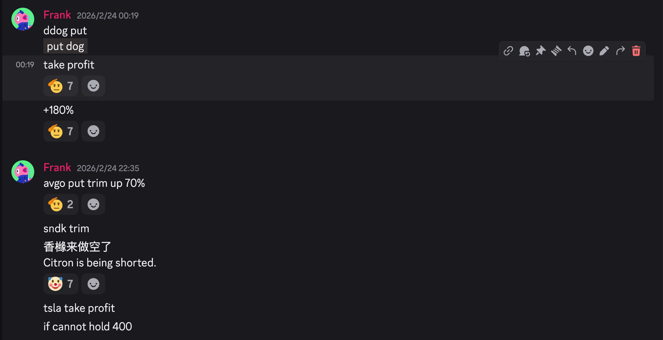 上周虽然波动仍然很大,但是我们依然维持着极高的胜率,在科技股普遍表现不佳的时候,我们于上周一止盈了上上周五做空的avgo与ddog,分别盈利70%与180%。